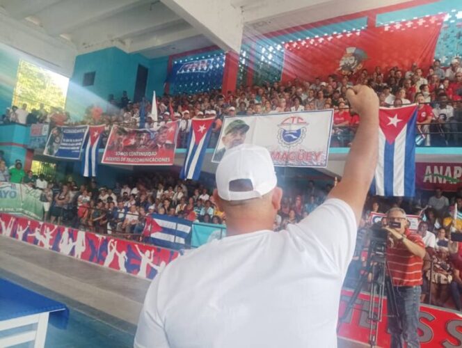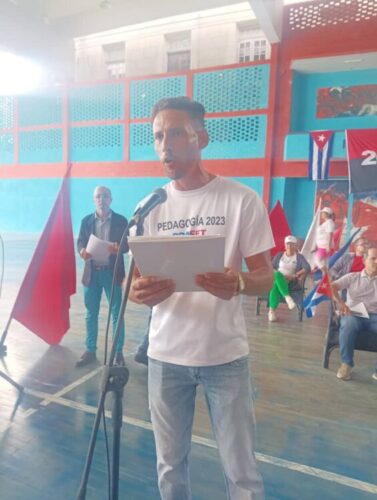 Henry Puente Rodríguez, secretario general del Comité Provincial de la Central de Trabajadores de Cuba (CTC), leyó la convocatoria al desfile y convidó a los agramontinos a festejar el Día Internacional del Proletariado estremeciendo la plaza ese día.