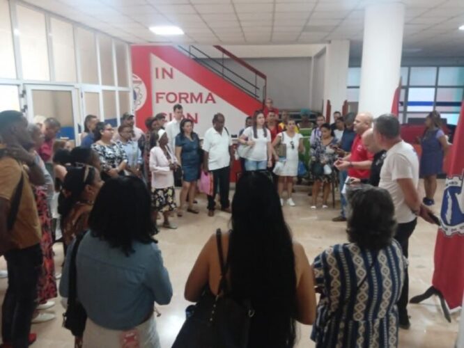 Finalmente Jorge Luis Sánchez, vendedor de artículos religiosos y secretario de la sección sindical 1, “quiero hablar con mucha claridad ante mis compañeros de labor, la Patria y la Revolución siempre podrán contar con nosotros”.