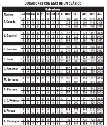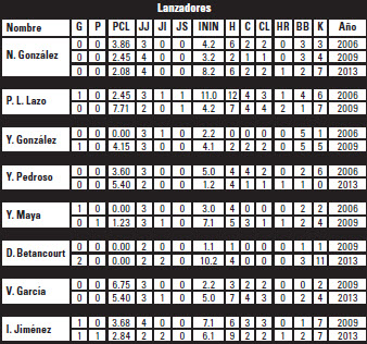 Por debajo de lo esperado andan William Saavedra (15-3), Alexander Ayala (10-2), Yurisbel Gracial (15-4) y Yosvani Alarcón (13-2, uno de ellos, el solitario jonrón del equipo); mientras Carlos Benítez y Víctor Victor Mesa son los únicos sin imparables en ocho y siete veces al bate, respectivamente.