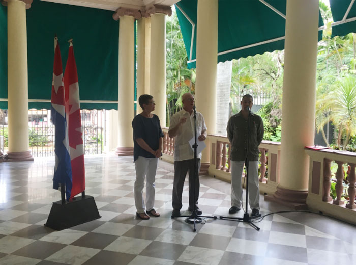 Presidieron el acto: Gerardo Hernández, héroe de la República de Cuba y vicerrector del Instituto Superior de Relaciones Internacionales; Leopoldo Bae, miembro del Departamento de Relaciones Internacionales del Comité Central del Partido Comunista de Cuba; Josefina Vidal, embajadora de Cuba en Canadá y Julio Garmendía, subdirector de Europa y Canadá en el Ministerio de Relaciones Exteriores de Cuba.