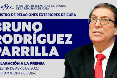 La Cancillería de Cuba anunció en su cuenta en Twitter que este lunes 25 de abril, a las 10 a.m, el ministro de Relaciones Exteriores del país caribeño, Bruno Rodríguez Parrilla, ofrecerá declaraciones a la prensa Nacional y Extranjera Continuar leyendo