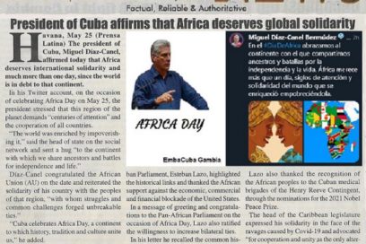 Los diarios gambianos Daily News y Star denunciaron el arreciado bloqueo que Estados Unidos le impone a Cuba desde hace casi 60 años, en un artículo difundido en sus respectivas ediciones impresas Continuar leyendo