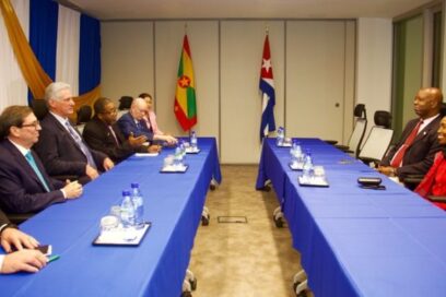 Como primera actividad de la visita oficial a Granada, el Presidente de la República, Miguel Díaz-Canel Bermúdez, sostuvo conversaciones oficiales con el Primer Ministro, Dickon Mitchell.